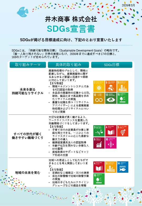 井木商事株式会社は、2026年3月に「SDGs宣言書」を発行いたしました。
